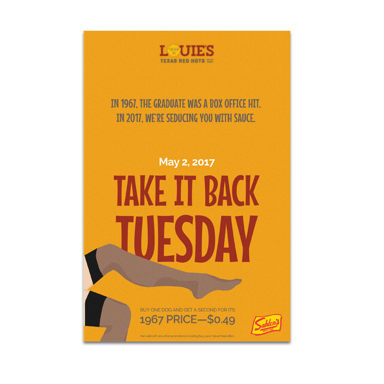 Louie’s Texas Red Hots and their signature sauce have been a staple of the Buffalo food scene for over 50 years. For their golden anniversary, they decided to run a Take It Back Tuesday promotion.